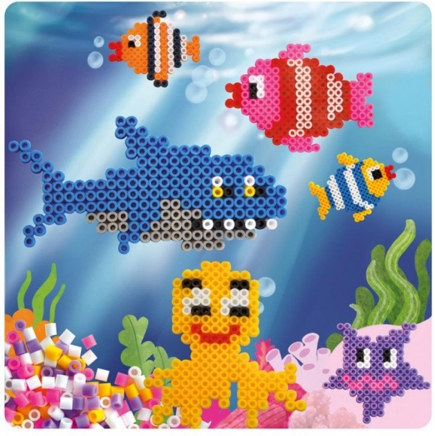 Avec ce set complet de perles à repasser, réalisez des motifs marins originaux ou vos propres créations. Il suffit de placer les perles sur la plaque en suivant un modèle ou votre imagination, de couvrir avec du papier cuisson et de repasser brièvement. Le résultat: des images solides, des décorations ou des pendentifs qui raviront petits et grands créateurs.