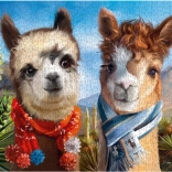 Un duo joyeux d’alpagas aux écharpes colorées sur fond de montagnes apporte une énergie positive à votre intérieur et vous motive à terminer le puzzle.