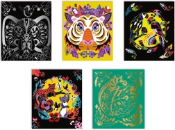 - 5 cartes à gratter représentant différents animaux, bâtonnet pour gratter