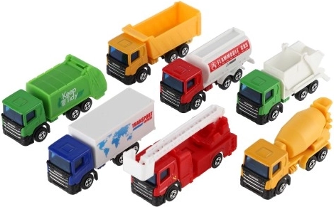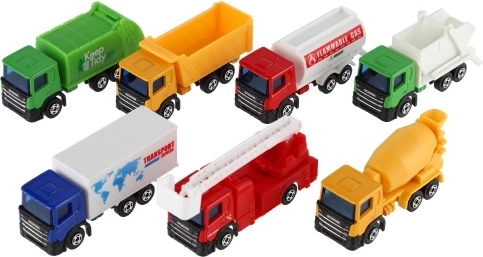Une collection variée de six camions différents, chacun offrant des fonctions et un design uniques.