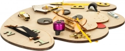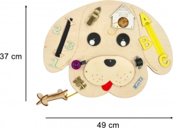 Ludique, la planche d’activité en bois en forme de chien développe chez les enfants la motricité fine, la logique et la concentration. Elle comprend des chiffres et lettres en bois colorés, une fermeture éclair, des boucles et loquets, une clochette et d’autres éléments interactifs qui encouragent l’apprentissage par le jeu et le développement sensoriel.