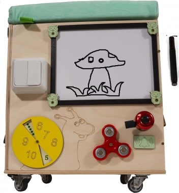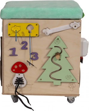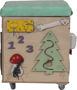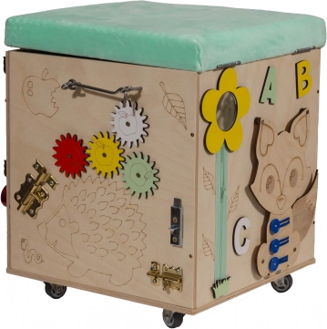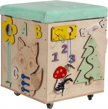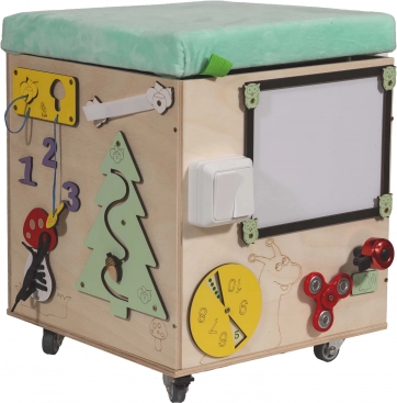 Matériaux : bois, tissu, pièces en plastique et en métalDimensions du cube : 31 cm x 31 cm x 40,5 cmDimensions de l’emballage : 36,5 cm x 36,5 cm x 42 cm