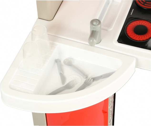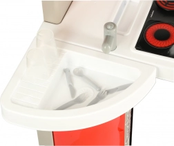 Cette cuisine compacte et peu encombrante transporte les enfants dans l’univers de la vraie cuisine. Grâce aux effets électroniques des plaques imitant la cuisson et aux boutons rotatifs au « cric-crac » caractéristique, le jeu devient encore plus réaliste. Des étagères et un égouttoir pratiques gardent tous les accessoires à portée de main.