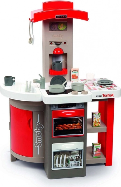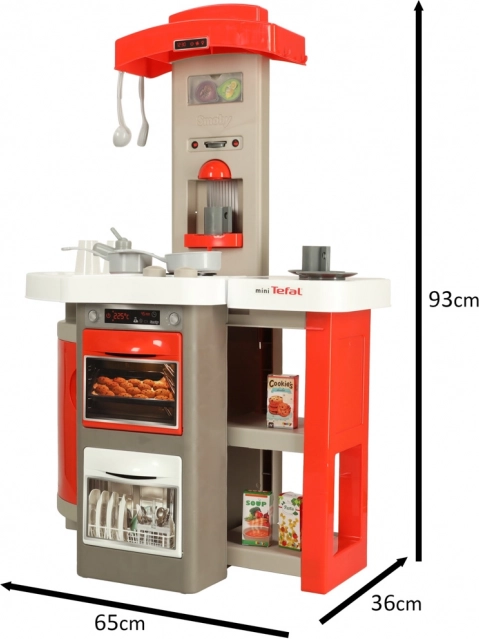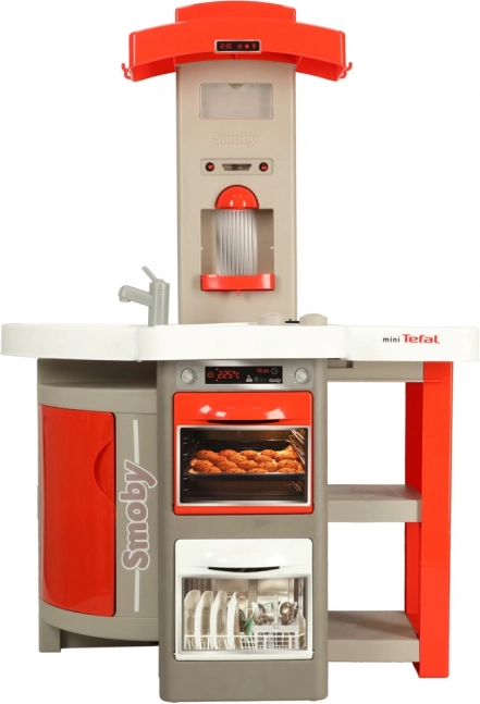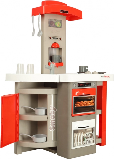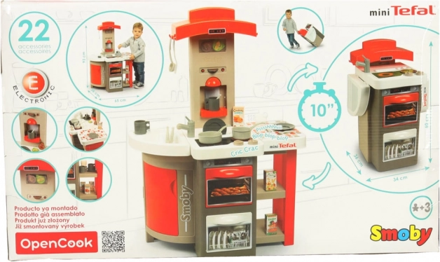 La cuisine pour enfants électronique SMOBY MINI TEFAL OpenCook aux couleurs modernes offre des effets lumineux et sonores, une structure pliable et des roulettes pour un transport facile. Elle comprend un évier avec robinet, des plaques avec effet de cuisson, un four, un lave-vaisselle, un réfrigérateur ainsi qu’une machine à café à capsules intégrée. Idéal pour développer l’imagination, la motricité fine et le jeu partagé.
