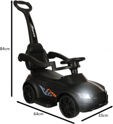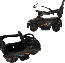 Cette voiture pour enfants au design racing combine porteur et jouet à pousser. Grâce à sa structure en plastique robuste, à son siège confortable avec haut dossier et à ses barres de sécurité latérales, elle est idéale pour les premières sorties à la maison comme en extérieur. Les lumières et les sons ajoutent l’ambiance d’une véritable course.