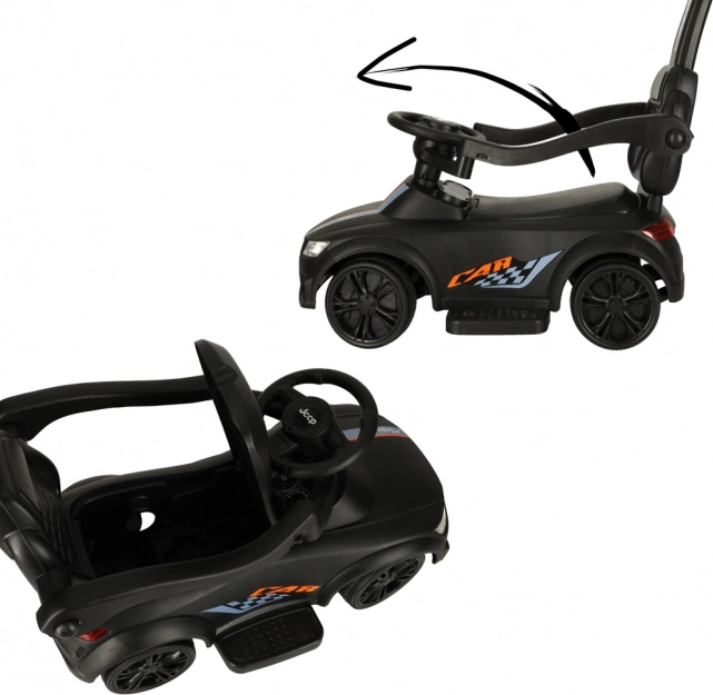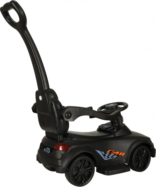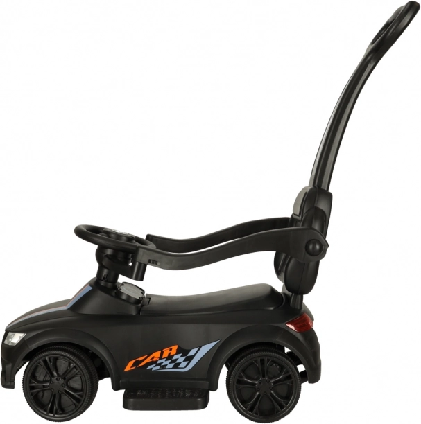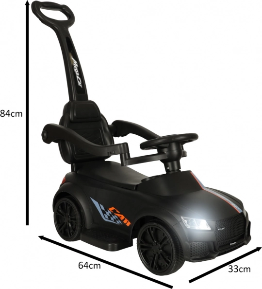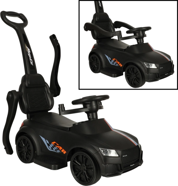 Voiture à pousser/porteur 3‑en‑1 noire qui grandit avec l’enfant dès 12 mois : elle offre une poignée de guidage pour les parents, des barres de sécurité et un dossier pour les premières sorties, ainsi que la possibilité de démontage progressif pour un usage en porteur autonome. Des effets lumineux et sonores réalistes (3× AA) transforment chaque balade en aventure amusante.