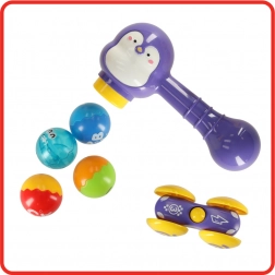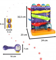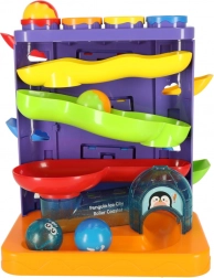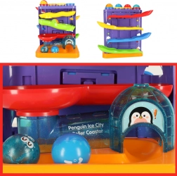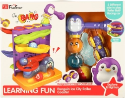 Le circuit interactif à thème pingouin tout mignon est un excellent choix pour une première approche des jouets techniques. Les enfants placent les billes dans les ouvertures supérieures et les « propulsent » en toute sécurité sur la piste à l’aide du marteau. Les pistes colorées et les descentes fluides apportent beaucoup de joie et favorisent la patience ainsi que la concentration.