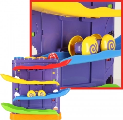 Une piste dédiée aux billes et une autre à la petite voiture maintiennent les enfants actifs plus longtemps et offrent davantage de scénarios de jeu.