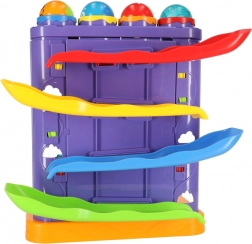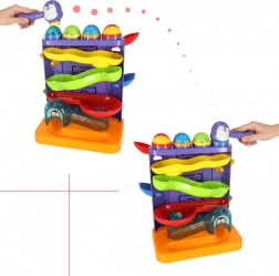 Un circuit à billes 3-en-1 ludique et coloré pour les enfants dès 3 ans, proposant deux pistes distinctes – l’une pour les billes et l’autre pour la petite voiture. Grâce au marteau, les enfants propulsent les billes depuis les ouvertures supérieures et suivent leur descente. Le jeu développe la motricité fine, la coordination œil–main et illustre naturellement les principes de la gravité. Inclus : 4× billes, petite voiture et marteau.