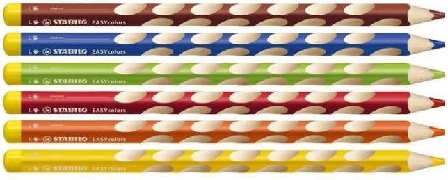 Les crayons ergonomiques pour gauchers STABILO EASYcolors aident les enfants à acquérir une prise correcte dès les premiers traits. Grâce à leur forme triangulaire plus épaisse et à des zones de préhension spéciales, ils sont idéaux pour les premiers dessins des enfants. L’emballage contient 6 crayons aux couleurs vives.