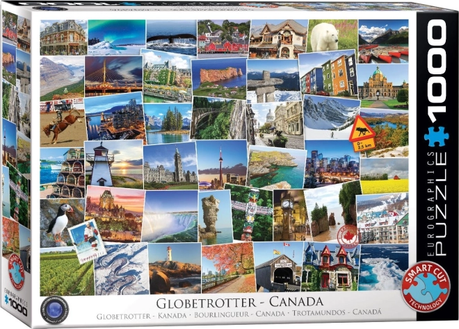 Découvrez les beautés du Canada avec le puzzle de qualité EUROGRAPHICS de la collection Globe-trotter. L’illustration présente plus de 40 motifs emblématiques du pays de la feuille d’érable. Grâce aux formes de pièces inhabituelles et à une découpe non conventionnelle, ce puzzle offre une difficulté supérieure et un divertissement prolongé. Idéal pour les amoureux du voyage et les puzzleurs exigeants.