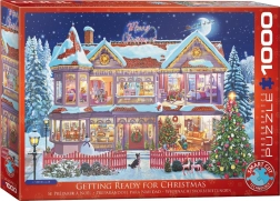 Le puzzle EUROGRAPHICS « Préparatifs de Noël » apporte une ambiance festive tout en offrant un défi aux amateurs de casse-têtes. Le découpage spécial ne suit pas la grille standard : les angles et les bords des pièces ne sont pas toujours alignés, ce qui augmente la difficulté et le plaisir de l’assemblage.