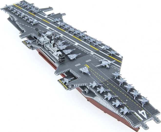 Le modèle fini du porte-avions, avec des avions miniatures sur le pont, se distingue idéalement comme décoration et pièce de collection.