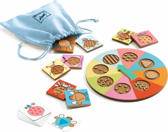 Le jeu Djeco Tactil Bzzz est conçu pour les enfants qui apprennent à reconnaître différentes textures et formes par le toucher. Les règles du jeu sont simples : Un joueur fait tourner la roulette et l'autre joueur tente de trouver la plaquette correspondante uniquement par le toucher. Le but est de collecter le plus de cartes d'insectes possible.<p>