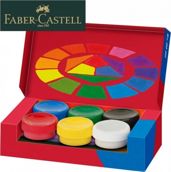 Le set de peintures à tempéra Faber-Castell contient 6 couleurs intensément pigmentées idéales pour différentes surfaces, disposées dans des pots pratiques avec couvercle à vis.