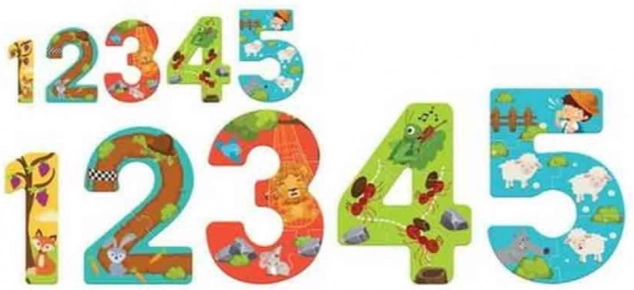 Avec ce puzzle créatif, vos enfants peuvent profiter d'une expérience éducative à travers le jeu et la découverte. Le produit contient un ensemble de cinq pièces, où chaque pièce a une forme unique de chiffre de 1 à 5.