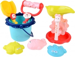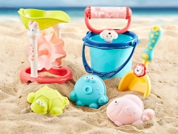 Comprend un seau, une pelle, des moules et un tamis avec une girouette. Idéal pour développer la créativité des enfants et un apprentissage ludique.