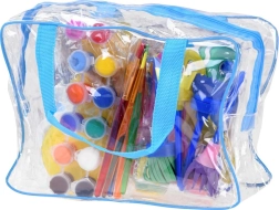 Sac transparent avec fermeture pour une organisation facile et le transport des fournitures de peinture.