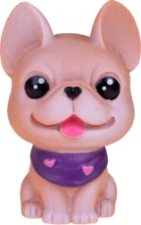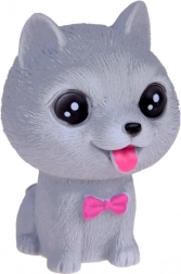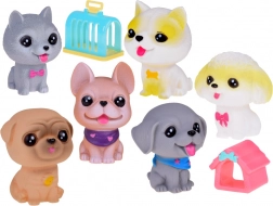 Chaque chien émet un couinement amusant lorsqu'on le presse et dispose d'un petit trou sur sa partie inférieure. L'ensemble comprend diverses races telles que le bouledogue, le shiba inu, le caniche, le braque de Weimar, le carlin et le chihuahua à poils courts, chacun avec ses propres accessoires charmants. En outre, il comprend une mini niche et un transporteur.