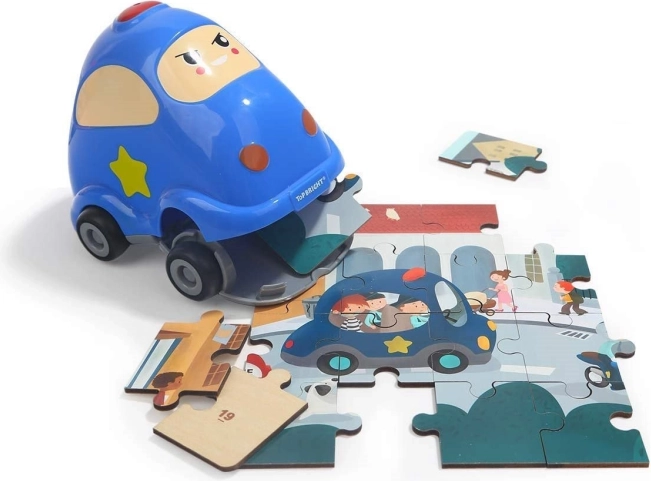 Découvrez le plaisir d'assembler avec TOP BRIGHT : à l'intérieur de la ravissante petite voiture de police se cache un puzzle en bois de qualité sur le thème des transports. La petite voiture est en plastique résistant, possède des roues fonctionnelles et un couvercle ouvrant par le dessous, ce qui permet de ranger toutes les pièces facilement à l'intérieur.