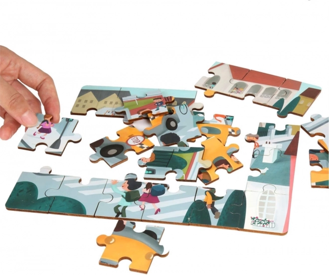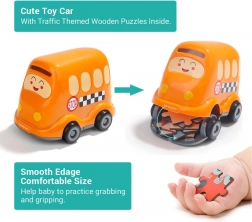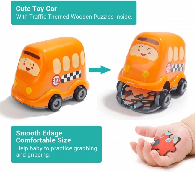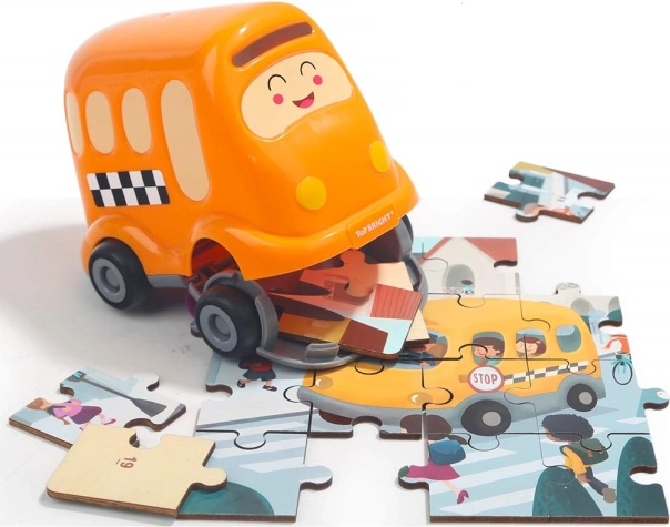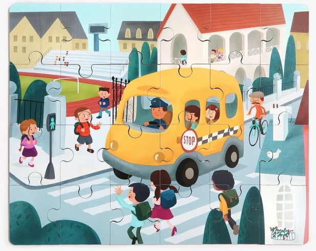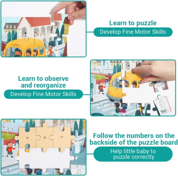 Découvrez un jouet 2 en 1 malin : un puzzle en bois de qualité sur le thème des transports et un bus scolaire en plastique avec espace de rangement. Les numéros au dos des pièces aident les enfants à assembler l’image étape par étape tout en entraînant la logique, les relations et les compétences motrices.