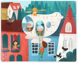Découvrez un jouet 2 en 1 malin : un puzzle en bois sur le thème des moyens de transport et un hélicoptère en plastique avec couvercle ouvrant pour ranger les pièces et autres trésors. Les pièces du puzzle sont numérotées, ce qui aide les enfants à s’orienter facilement et rend l’assemblage à la fois amusant et éducatif.