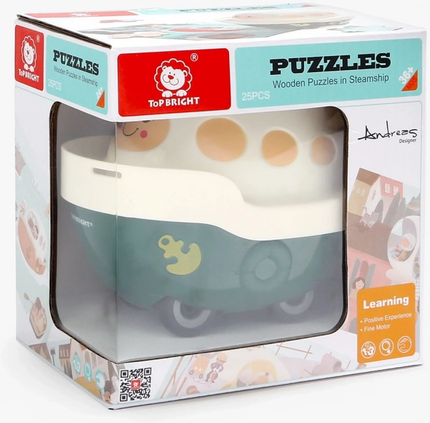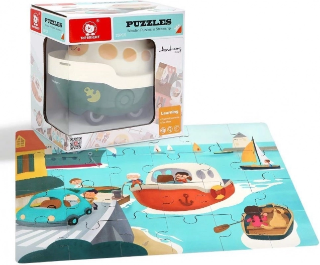 Découvrez l’association astucieuse d’un puzzle et d’un jouet en un seul produit : un puzzle en bois sur le thème du port dissimulé dans un adorable petit bateau en plastique à roulettes. Chaque pièce est numérotée pour un assemblage plus facile, développe la pensée logique et mathématique et, grâce à un espace de rangement pratique, vous avez toujours le puzzle à portée de main. Complète à merveille la mini-série de véhicules TOP BRIGHT et forme un puzzle panoramique.