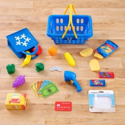 30 pièces : aliments de jeu, panier, sac, carte de crédit, billets en papier et pièces en plastique