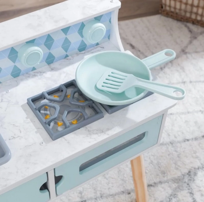 La cuisine en bois pour enfants KIDKRAFT Play & Put Away est un ensemble de jeu bien pensé qui apporte la joie de cuisiner en toute sécurité. Des éléments réalistes, comme les plaques de cuisson avec deux boutons de commande qui cliquent agréablement à la rotation, et les portes ouvrantes, stimulent le jeu créatif et le développement des compétences sociales.