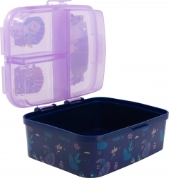 Boîte à déjeuner originale et pratique avec plusieurs compartiments, idéale pour les enfants qui peuvent l'emporter à l'école, sur le terrain de jeu ou en excursion. Fabriquée en matériau résistant, elle supporte les chutes et les chocs quotidiens. La boîte a deux niveaux - dans la partie inférieure se trouve un grand compartiment et la partie supérieure est divisée en trois compartiments séparés et refermables.