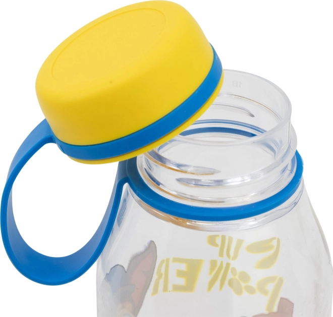 La bouteille est décorée avec des personnages colorés de la série Pat' Patrouille que les enfants adorent.