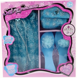 Ce set enchanteur de couleur bleue aide les enfants à adopter facilement le look d’une véritable princesse. Grâce à la combinaison de la jupe, des petits escarpins et du sac, il est prêt à l’emploi et stimule l’imagination ainsi que les jeux de déguisement créatifs.