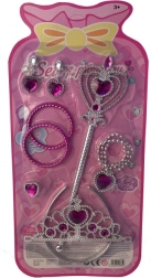 Ce set d’accessoires magique transforme en un instant chaque enfant en princesse. Les pièces argentées agrémentées de strass en forme de cœur roses et violets encouragent le jeu créatif et de rôle et apportent une touche festive à tout costume.