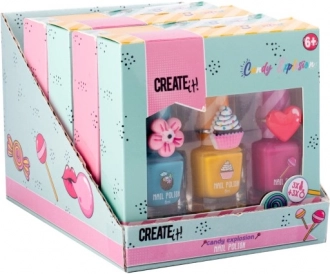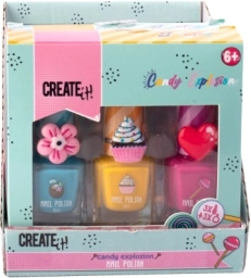 Ce coffret ludique de vernis à ongles CREATE IT! ouvre aux enfants un monde de couleurs et d’imagination. Trois teintes intenses (turquoise, jaune, rose) s’appliquent facilement et, grâce au petit pinceau, conviennent parfaitement aux ongles délicats. Chaque vernis est complété par une bague thématique assortie au motif du flacon – un accessoire encore plus réjouissant pour parfaire la manucure.