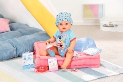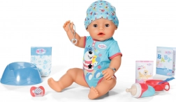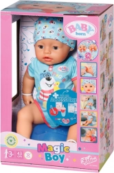 Découvrez la poupée réaliste BABY born garçon 43 cm avec une tétine magique qui ouvre et ferme les yeux en tournant la tétine, quelle que soit la position. Elle offre 10 fonctions réalistes sans piles – elle boit de l’eau, mange de la bouillie, fait pipi dans la couche ou sur le pot, verse des larmes et sait même faire caca. Corps doux Soft Touch, membres facilement articulés et riches accessoires pour des heures de jeu créatif et le développement de l’empathie.