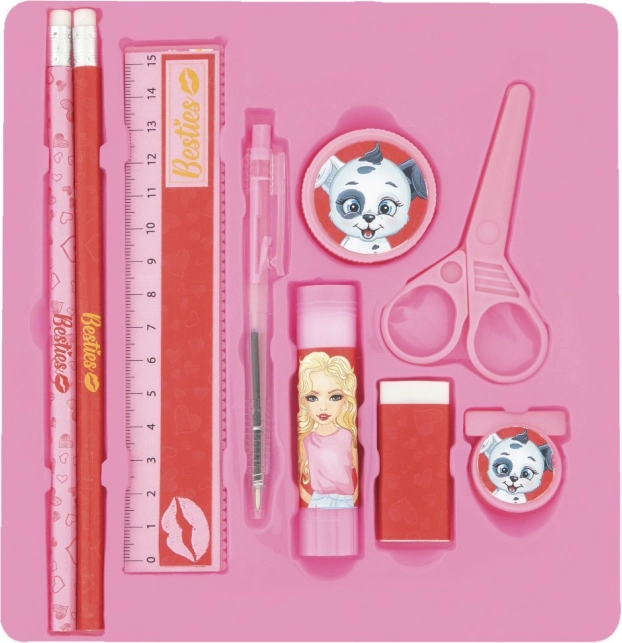 L’ensemble scolaire Besties comprend un taille-crayon, 2 crayons, une règle, un stylo bille, une gomme et de la colle. Idéal pour les élèves.