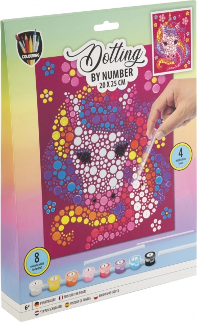 Transformez vos moments libres en expérience créative. La toile avec des points numérotés vous guide pas à pas – chaque numéro correspond à une couleur précise. Le résultat est un motif de licorne saisissant que vous exposerez fièrement.