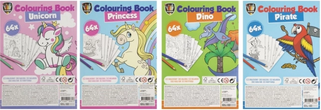 Livre de coloriage A5 avec 64 images créatives offre un divertissement pour les enfants. Des thèmes comme Licorne, Princesses, Dino et Pirates inspirent les petits artistes.