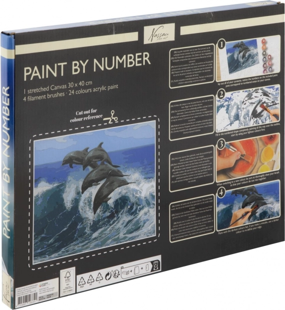 Ce kit créatif vous permet de réaliser facilement une toile impressionnante au motif marin. Il suffit de colorier les zones numérotées avec les teintes correspondantes pour voir apparaître progressivement une scène réaliste de dauphins dynamiques. Grâce à la toile tendue, le résultat est immédiatement prêt à être exposé.