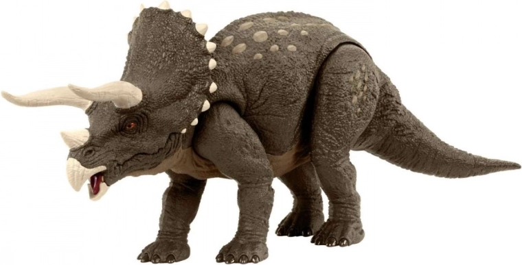 Longueur d’environ 43 cm, cornes réalistes et collerette, pattes, queue, tête et mâchoires articulées – prêt pour des scènes d’action ou l’exposition.