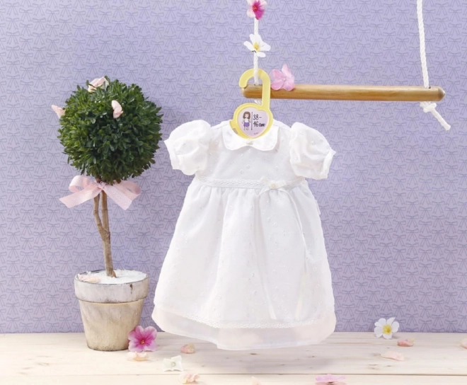 Robe de baptême festive pour poupée BABY BORN 43 cm de Dolly Moda. Design élégant, habillage facile et fabrication de qualité. Idéale pour les moments festifs.