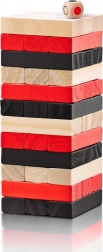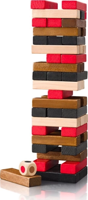 Empilez, retirez et équilibrez. Les blocs en bois colorés et le dé apportent de nouveaux défis et transforment chaque manche en un spectacle palpitant.