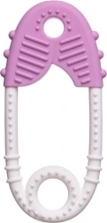 Pratique anneau de dentition en silicone en forme d’épingle, il apporte un soulagement aux bébés pendant la poussée dentaire. Il est léger, facile à saisir et grâce aux différentes textures de surface, il masse délicatement les gencives. Convient dès 0 mois et idéal pour les petites mains des enfants.