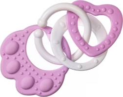 L’anneau est doté de formes variées comme des rondelles, des cœurs et des clochettes, qui divertissent tout en offrant un soulagement de la douleur liée à la poussée dentaire.