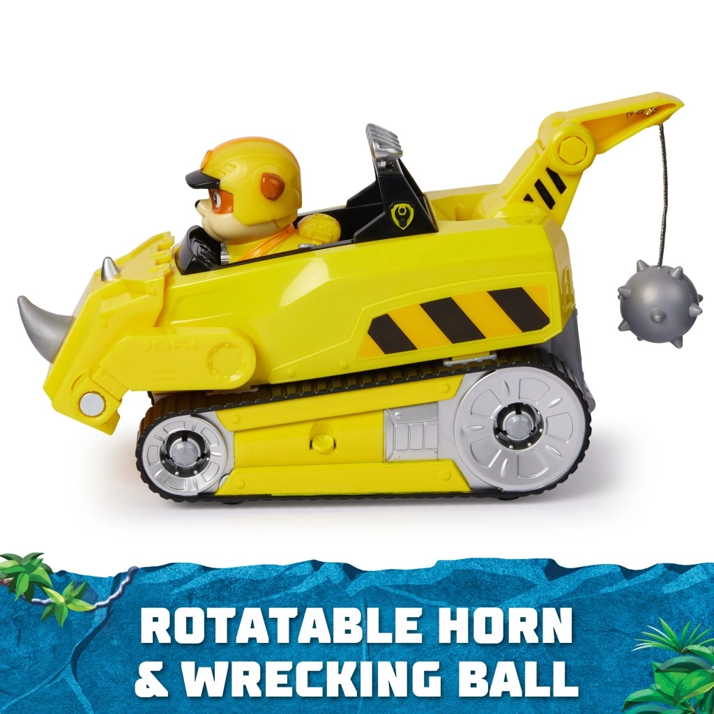 Le compagnon préféré Rubble arrive avec un véhicule robuste offrant une impressionnante transformation en mode sauvetage. Appuyez sur l’insigne de la Pat’ Patrouille sur le capot pour faire pivoter instantanément la pelle de l’engin, qui dévoile une corne de rhinocéros. Ouvrez le coffre arrière, relevez le bras de grue et utilisez la boule de démolition pour enlever tout obstacle.