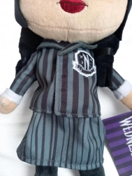 Découvrez le charme du héros de série préféré avec notre élégante poupée en peluche Wednesday Addams. Cette poupée de 32 cm est fidèlement reproduite dans deux tenues emblématiques : l'uniforme scolaire gris de Nevermore et la robe noire extravagante qu'elle portait à la Rave'N Dance de Nevermore.