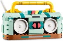 Remontez le temps avec un set créatif qui marie style rétro et amusement moderne. À partir d’un seul set, construisez un patin à roulettes remarquable avec roues roses, « lacets » jaunes et talon personnalisable avec des éléments colorés – puis transformez-le en skateboard compact ou en boombox stylée.