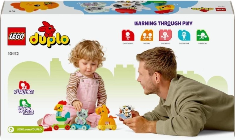 Le coffret comprend 4 animaux à construire (coq, cheval, mouton et petite vache) et 3 wagonnets robustes faciles à assembler. Les grandes pièces DUPLO aux bords arrondis sont sûres et idéales pour les petites mains. Les parents peuvent facilement participer et encourager le jeu libre, l’expression et la découverte du monde.