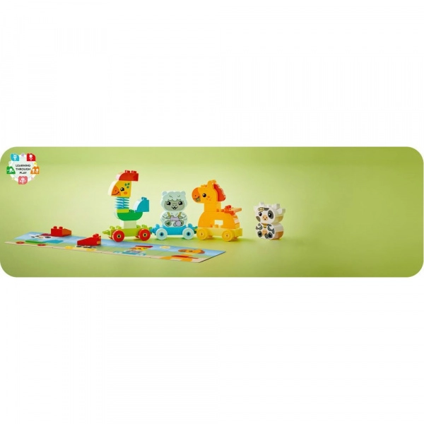 Les animaux s’installent dans des wagonnets assortis par couleur, ce qui encourage la reconnaissance des couleurs, la logique et les premières compétences de tri.