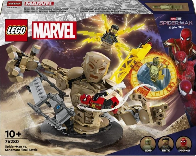 LEGO Marvel Spider-Man comprend trois méchants : Sandman, Electro et Lizard, qui fait ici sa première apparition dans un set LEGO Marvel. De nombreux emplacements pour placer les minifigurines élargissent les possibilités de jeu et d’exposition. Les enfants peuvent faire pivoter et manipuler Sandman, qui tente d’attraper Spider-Man avec ses énormes bras, tandis que Spider-Man se balance au-dessus de sa tête sur un « fil » de toile flexible. Le modèle peut être combiné avec le set L’ultime affrontement de Spider-Man, vendu séparément, pour encore plus de fun.